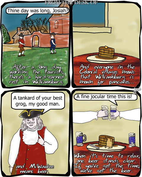 If you’ve clocked any time in Williamsburg, you’ll know what I mean about pancakes and beer. (cartoon from 2003)