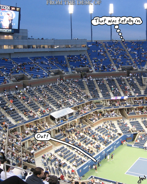 Funny how everyone in the stadium seems to have a better view than the guy on the court.