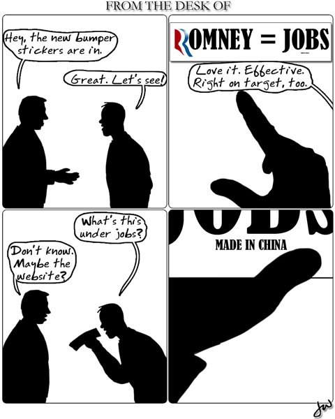 I was listening to a radio reporting about one of Romney’s state offices. They described the logo on a poster on the wall and this is what I pictured — they way things have been going for him lately.