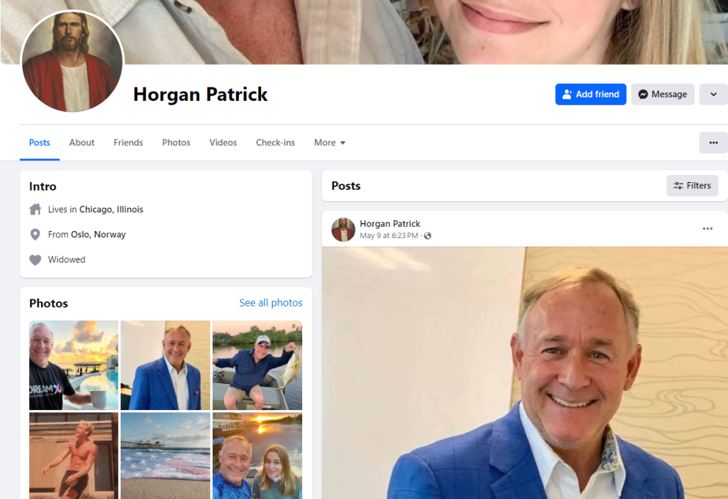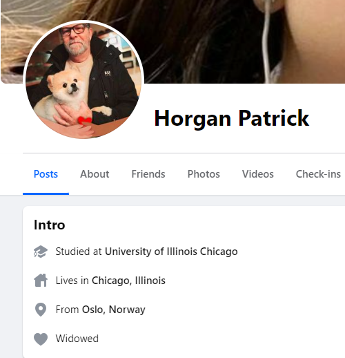 Horgan says he is from Olso but now lives in Chicago. A quick image search of the latest photo pulls up Scott Kufus, shown as a TV producer and also Sean Horowitz, a in Denver on LinkedIn. Neither has many connections or posts to indicate that this is a real account.