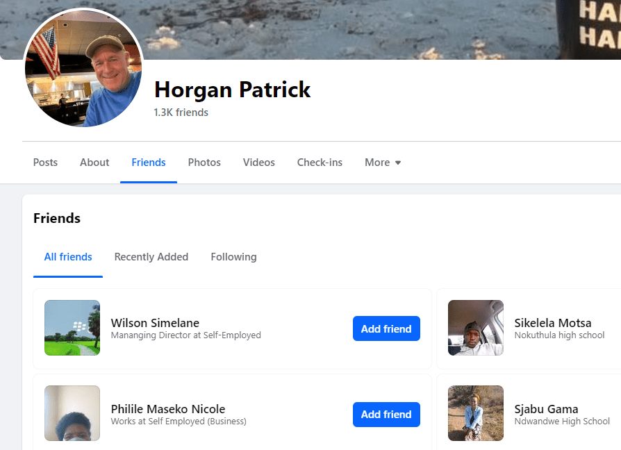 “Hello, I value making new friendship not regarding age, distance and religion. After all, I like to focus on what we have in common and not our differences. I tried to send you a friend request but it’s not going through. I suggest it’s your privacy settings. but you can add me if you don’t mind let us being honest and genuine friends… XOXOXO”