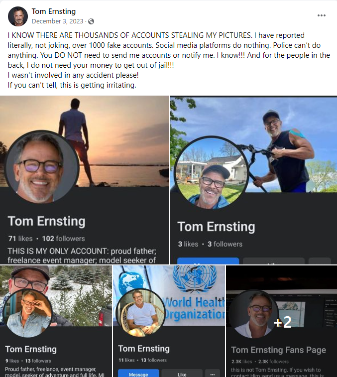 A search on another picture from Jesus HP’s account pulled up a link on scam awareness website. This site reported that these photos were also associated with a Facebook account under the name George Amos,