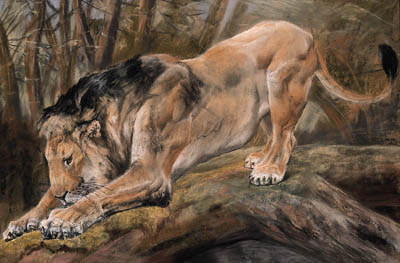 A Lion Sharpening its Claws on a Tree by John Trivett Nettleship, 1894